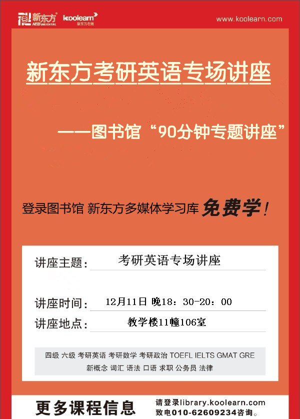 新东方考研英语专场讲座——图书馆“90分钟专题讲座”