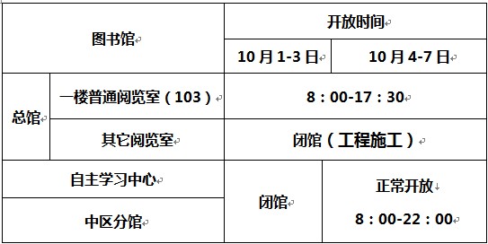 根据学校"关于2013年国庆节放假通知"安排,图书馆国庆节开放时间如下: