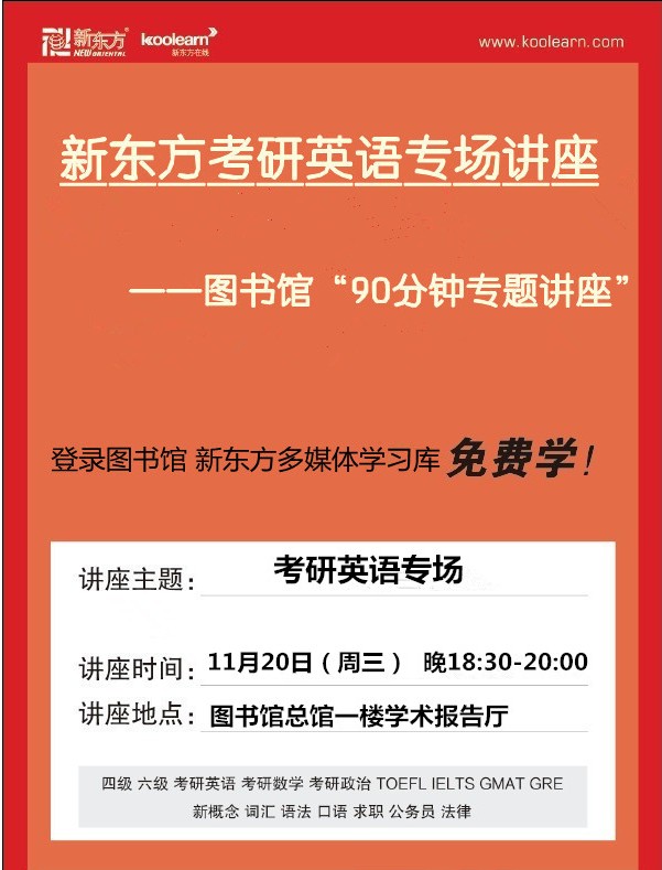 新东方考研英语专场讲座——图书馆“90分钟专题讲座”