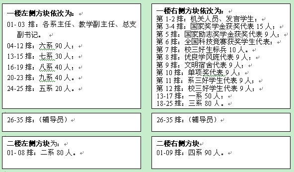 邀请各系主任、副主任参加,全体学生管理人员,获奖学生及学生代表参加。2:50分进场完毕。