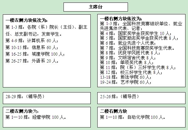 邀请各院(系)院长、主任、副主任参加,全体学生管理人员,获奖学生及学生代表、就业先进集体获奖代表、先进个人参加。2:50分进场完毕。