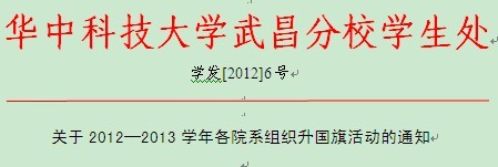 学发[2012]6号(关于2012—2013学年各院系组织升国旗活动的通知