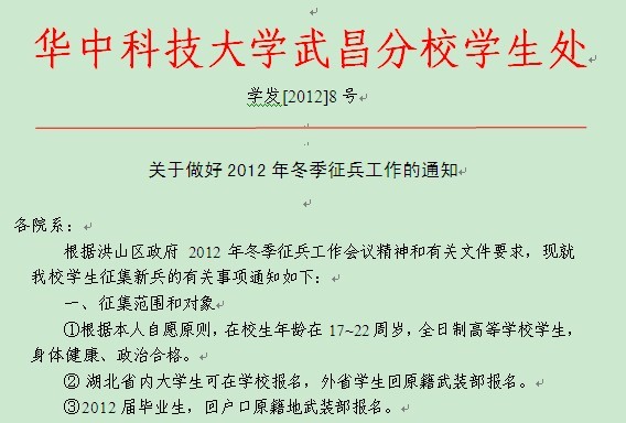 学发[2012]8号(关于做好2012年冬季征兵工作的通知)