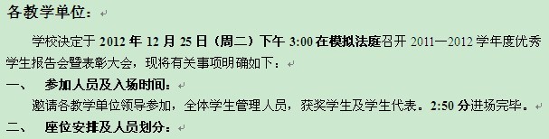 关于召开2011—2012学年度优秀学生报告会暨表彰大会的通知
