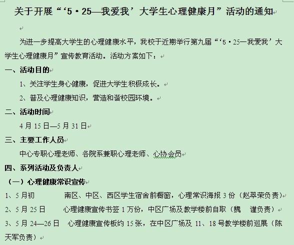 关于开展“‘5•25—我爱我’大学生心理健康月”活动的通知