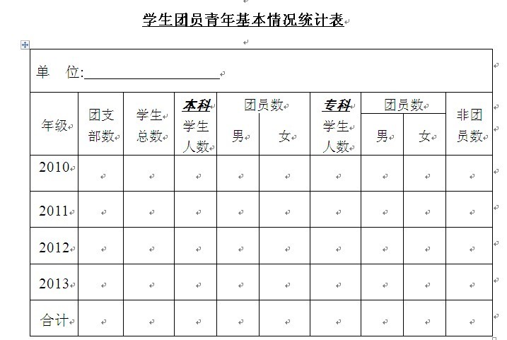 为进一步健全基层团组织,掌握学生团员青年的基本数据,现对各院系学生基本情况进行统计,请各院系分团委予以支持配合,于2013年10月25日前,将统计表电子文档及纸质文档上交校团委。