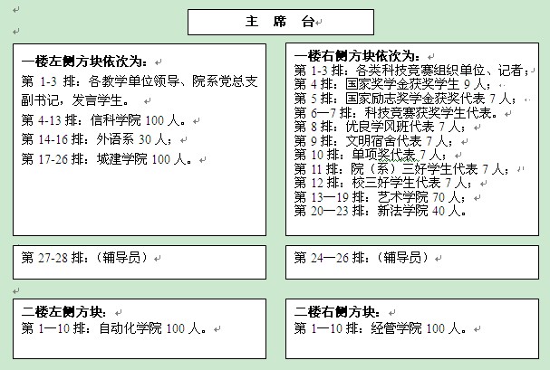 邀请各教学单位领导参加,全体学生管理人员,获奖学生及学生代表。2:45分进场完毕。