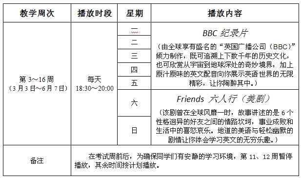 本学期图书馆总馆401室的“外语学习共享空间(FLLC)”继续为大家提供视频播放服务,上学期通过面向全校师生发放问卷调查(300份),我们收集到了读者的视频需求排名,根据读者提供的视频名称,本学期计划从排名前三的视频中选取两种,具体播放计划如下: