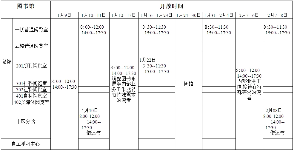 图 书 馆 假 期 开 放