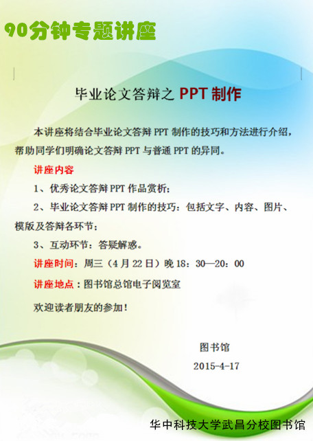 毕业论文答辩之PPT制作——图书馆90分钟专题讲座