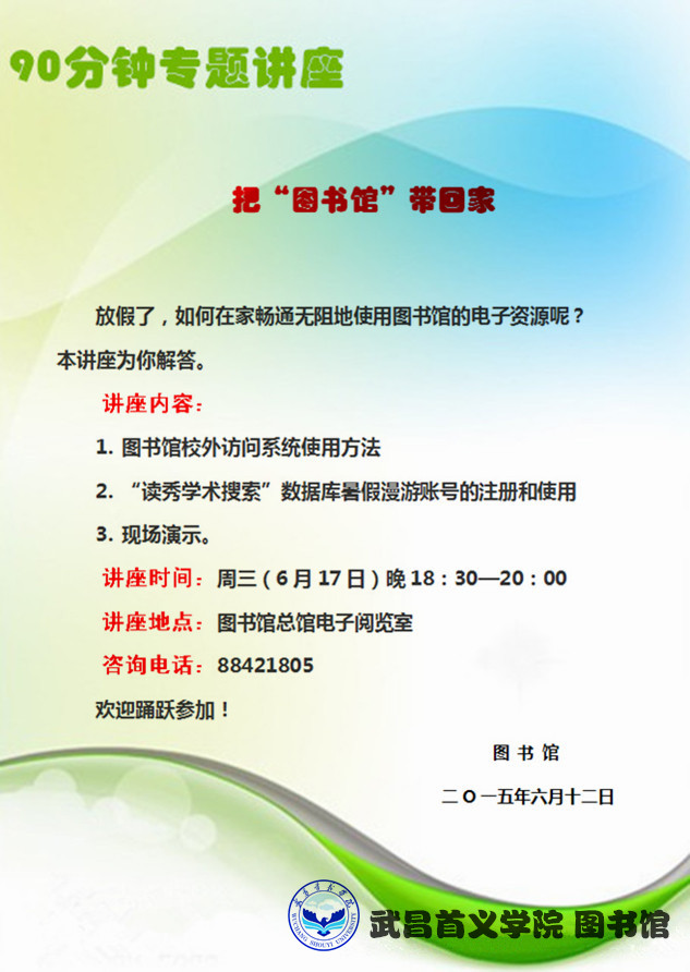 把“图书馆”带回家——图书馆90分钟专讲座