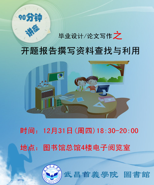 图书馆90分钟专题讲座:毕业论文之开题报告撰写资料查找与利用