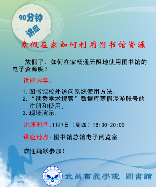 图书馆90分钟专题讲座:放假在家如何利用图书馆的资源
