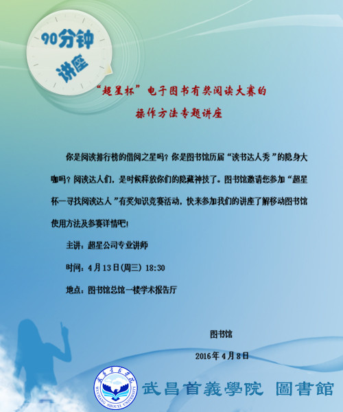 图书馆90分钟专题讲座:“超星杯”电子图书有奖阅读大赛的操作方法