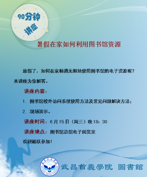 图书馆90分钟专题讲座:放假在家如何利用图书馆资源