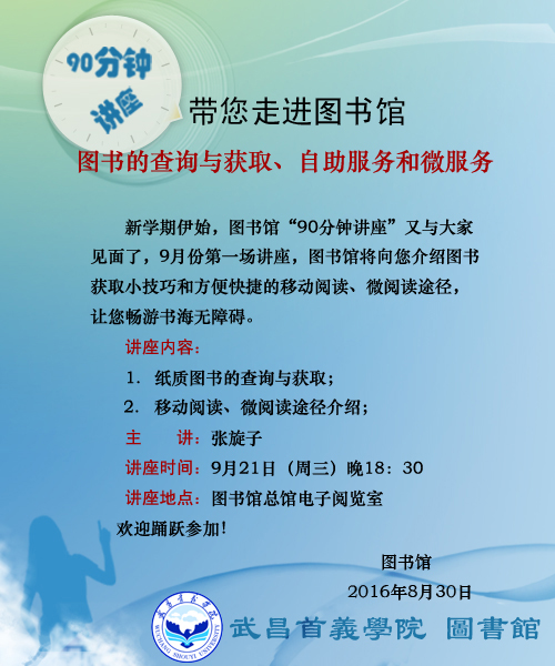 图书馆90分钟专题讲座:带你走进图书馆 图书的查询与获取 自动服务和微服务