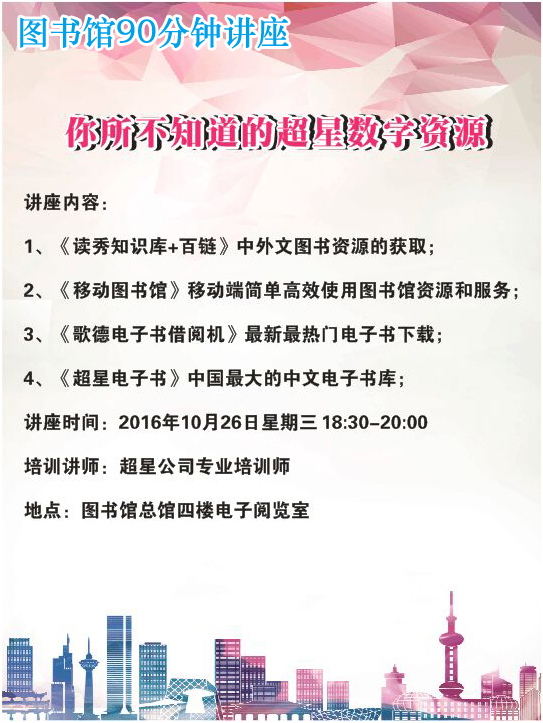 图书馆90分钟专题讲座:你所不知道的超星数字资源