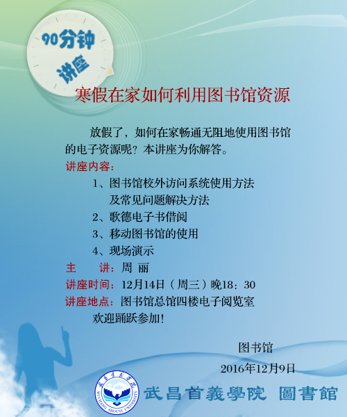 图书馆90分钟专题讲座:寒假在家如何利用图书馆资源
