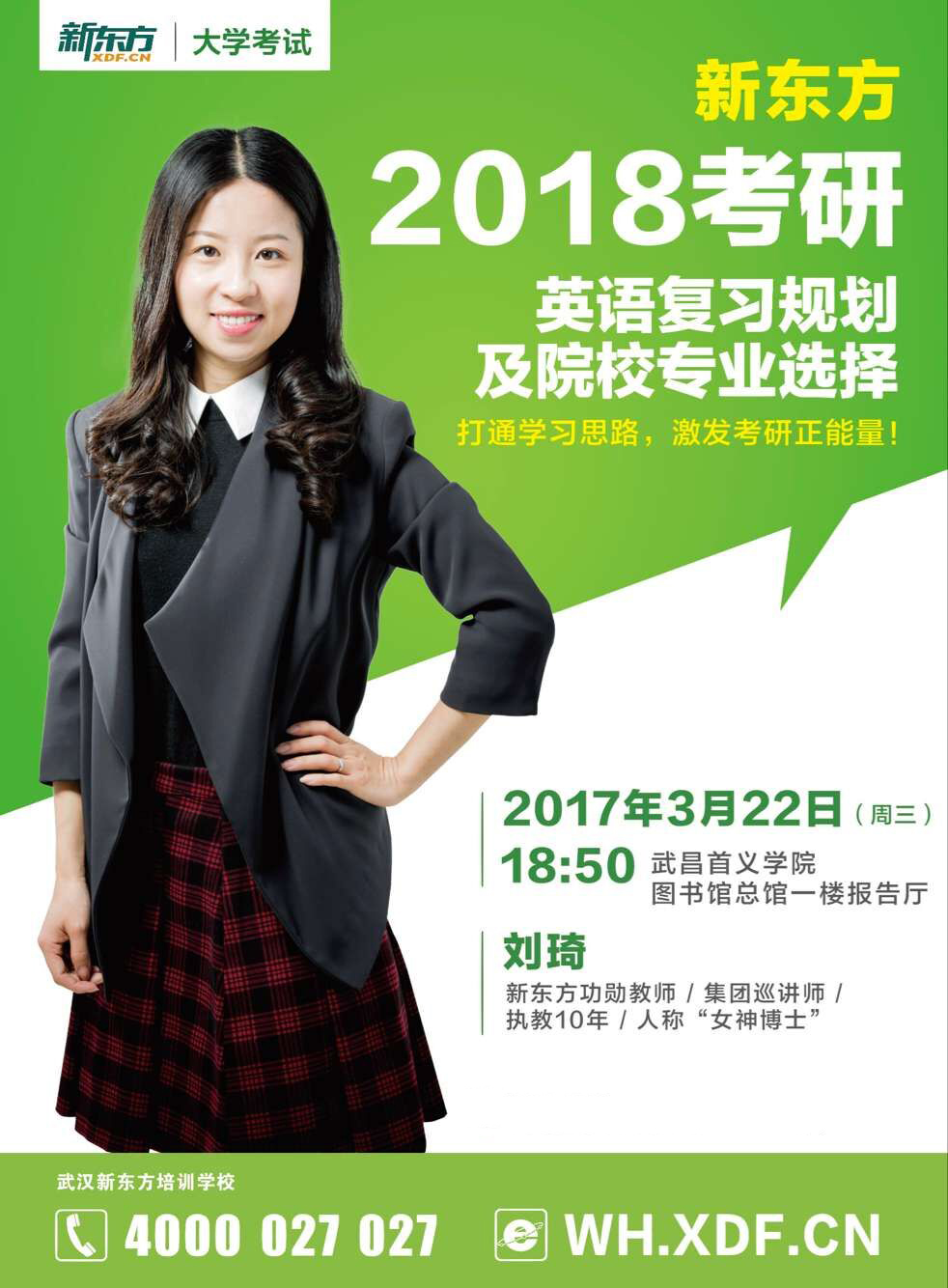 图书馆90分钟专题讲座:新东方2018考研英语复习规划及院校专业选择