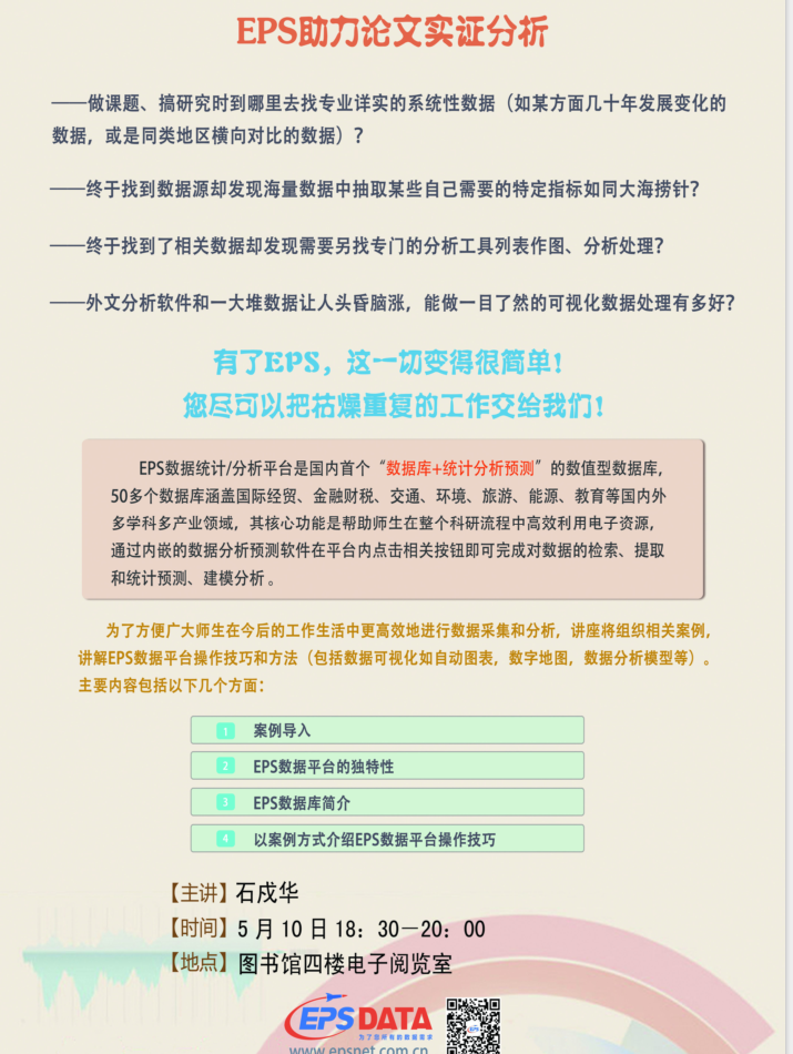 图书馆90分钟专题讲座:EPS助力论文实证分析