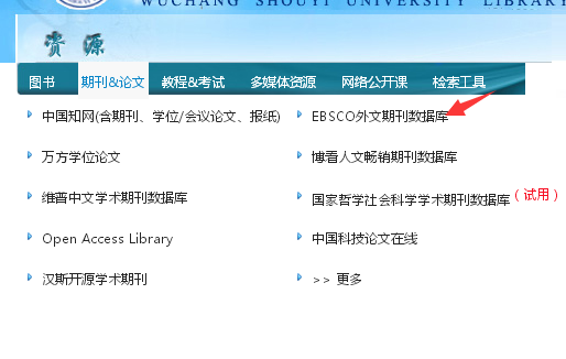 (1)进入图书馆主页,找到“EBSCO外文期刊数据库”入口