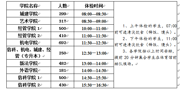 ③各辅导员严格按照时间安排组织学生体检,以免造成拥堵或空缺。
