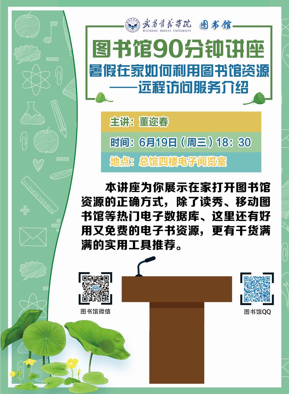 90分专题讲座:暑假在家如何利用图书馆资源