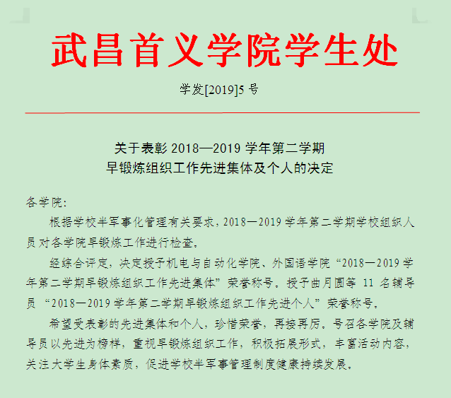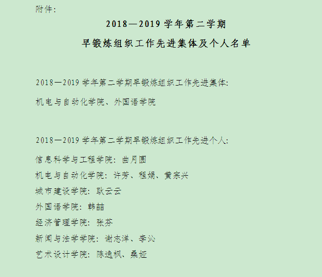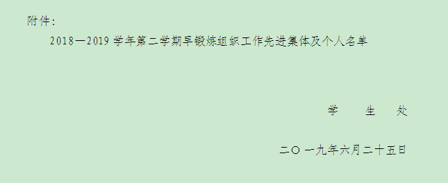 关于表彰2018—2019学年第二学期早锻炼组织工作先进集体及个人的决定