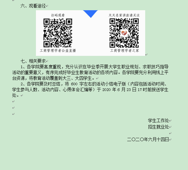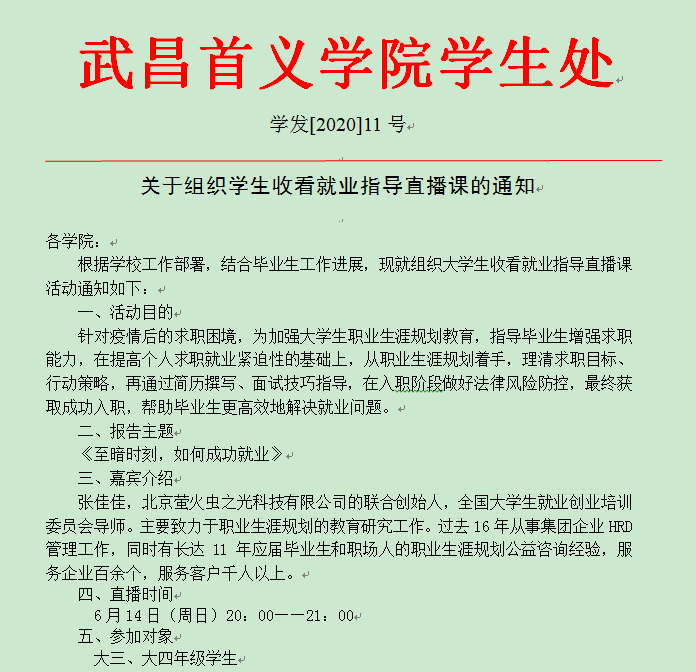 学发[2020]11号(关于组织学生收看就业指导直播课的通知)