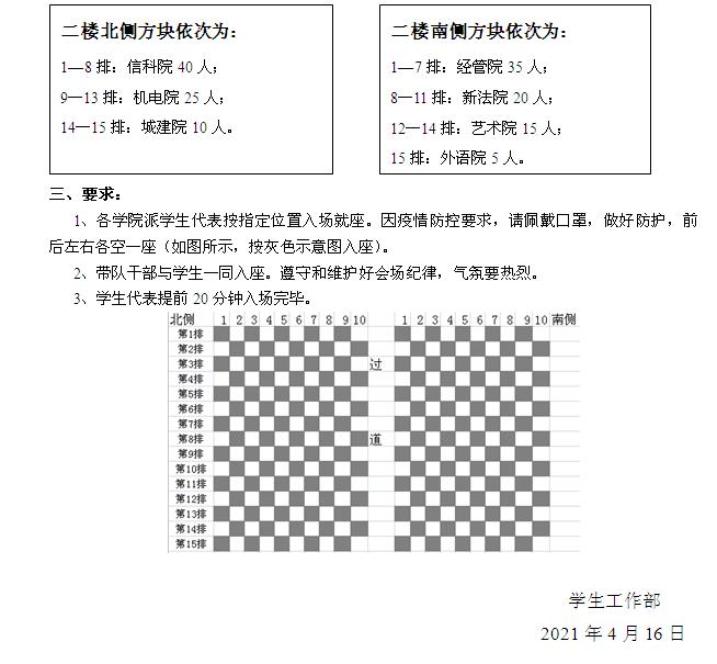 学生代表共150人。其中信科院40人,机电院25人,城建院10人,外语院5人,经管院35人,新法院20人,艺术院15人。