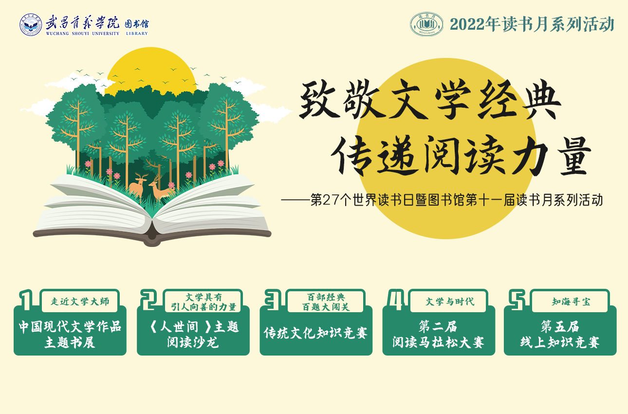 在第27个“世界读书日”暨第十一届读书月来临之际,图书馆开展以“致敬文学经典 传递阅读力量”为主题的系列读书活动,引领广大师生一起重温经典文学,在文学中探寻从容面对一切杂难的信仰和力量。