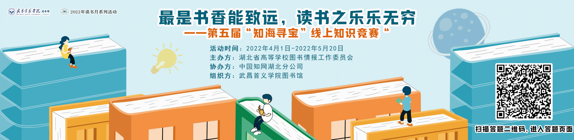 “最是书香能致远,读书之乐乐无穷。”为迎接2022年“世界读书日”的到来,引导和鼓励大家与书为友,营造浓郁的书香氛围,让更多的人漫步于实体图书馆,畅游于数字图书馆之中,湖北省高等学校图书情报工作委员会联合中国知网湖北分公司以2022年“世界读书日”为契机,面向湖北全省开展第五届“知海寻宝”线上知识竞赛活动。