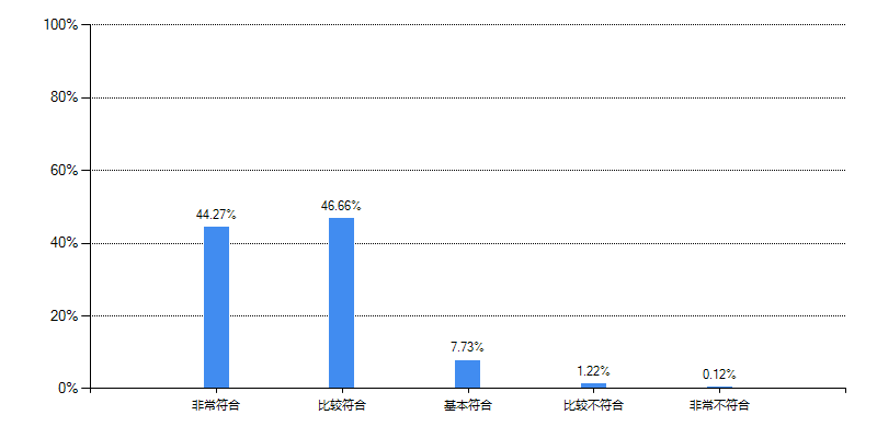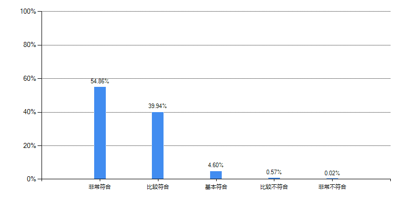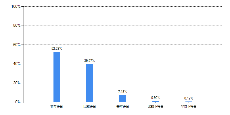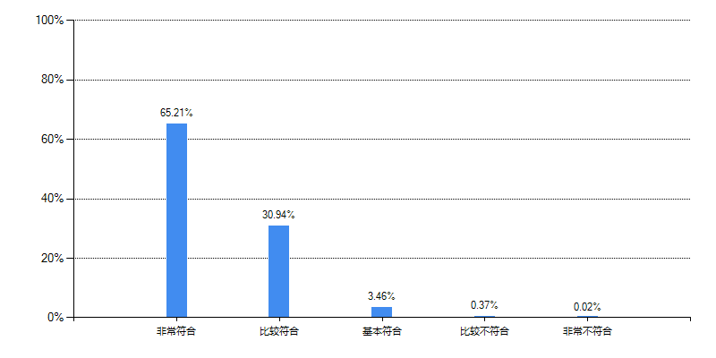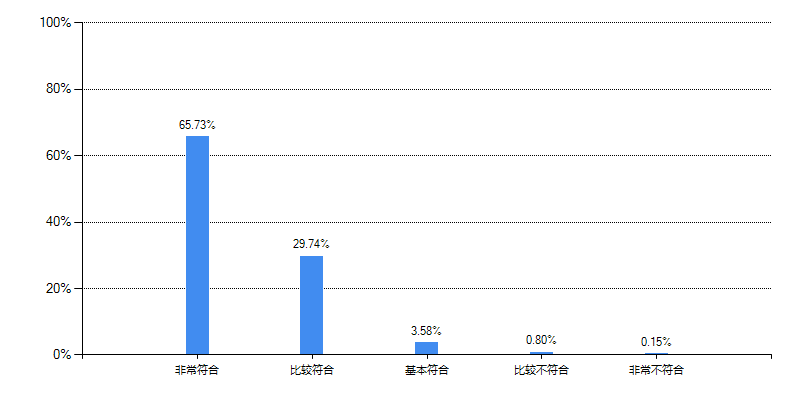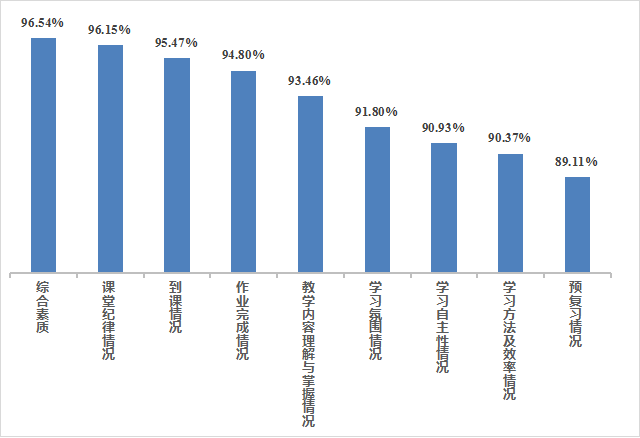9.综合素质(授课班级学生尊师爱学,综合素质高)情况统计(比较符合以上比例为96.54%)。具体情况如下: