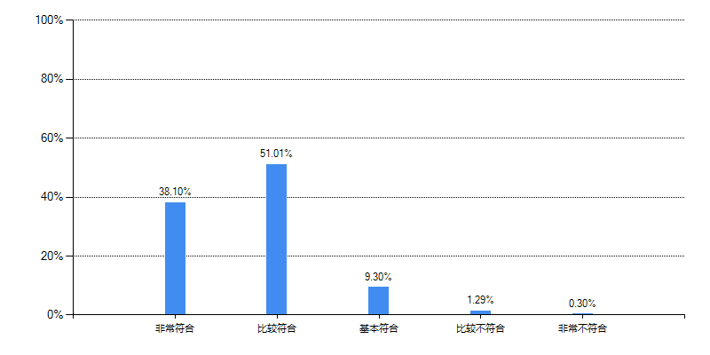 3.学习主动性情况(授课班级学生学习主动性强)统计(比较符合以上比例为90.93%)。具体情况如下: