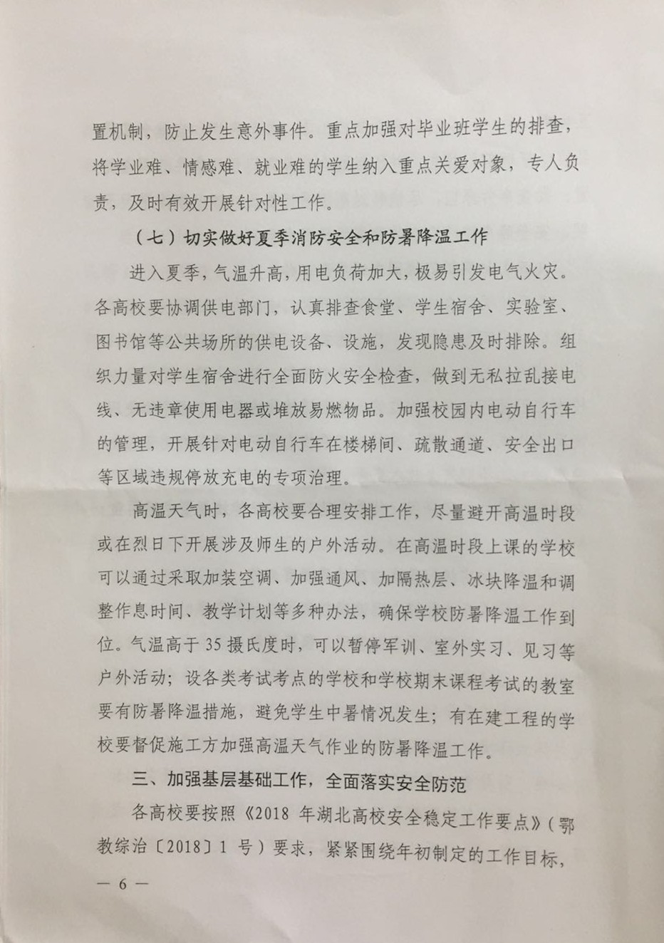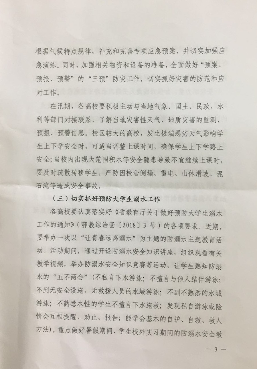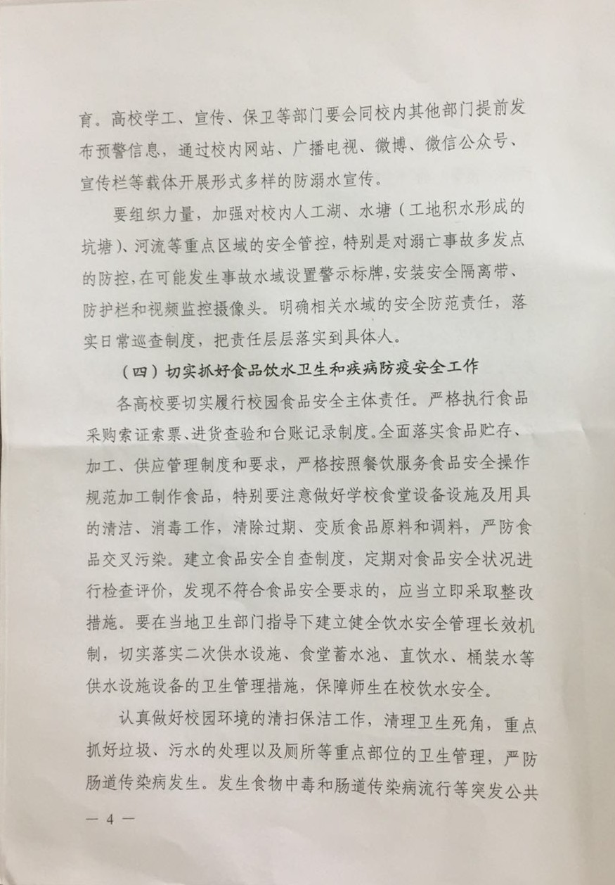 现将《省委高校工委、省教育厅关于做好夏季和汛期高校安全工作的通知》文件予以转发,请各单位认真落实文件精神,按照文件要求做好夏季和汛期期间的校园安全工作,消除安全隐患,制定完善应急预案,定期开展演练。