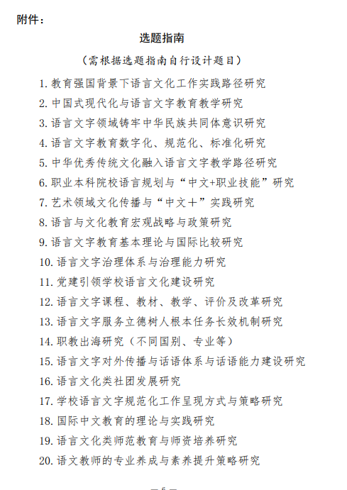 1.2026 年度课题共分为二十个研究方向,详见选题指南。可依据选题指南自拟题目。2.课题类别包括以下两种,分别为重点课题和一般课题。必要时根据工作需要设立委托课题。(1)重点课题以课题研究方向为依据,可自行设计课题名称和研究内容,研究内容应具有创新性,取得的研究成果应具有较高理论价值或实践价值。(2)一般课题的申请者可根据自己的研究方向和研究基础,从课题研究方向中自行设计课题名称和研究内容。